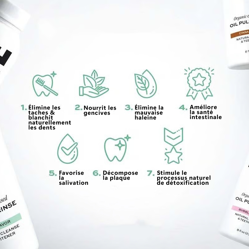 • Nettoie en profondeur : Aide à éliminer les impuretés et les toxines de la bouche, la laissant exceptionnellement propre.